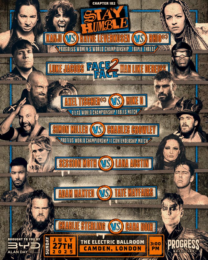 This Sunday, 21 July, PROGRESS Wrestling ignites Camden with Chapter 182: Stay Humble, live from the iconic Electric Ballroom. With Graps TV and The Sicko Show delivering a must-watch live watch-along, the night promises unforgettable moments and seismic shifts across every division.